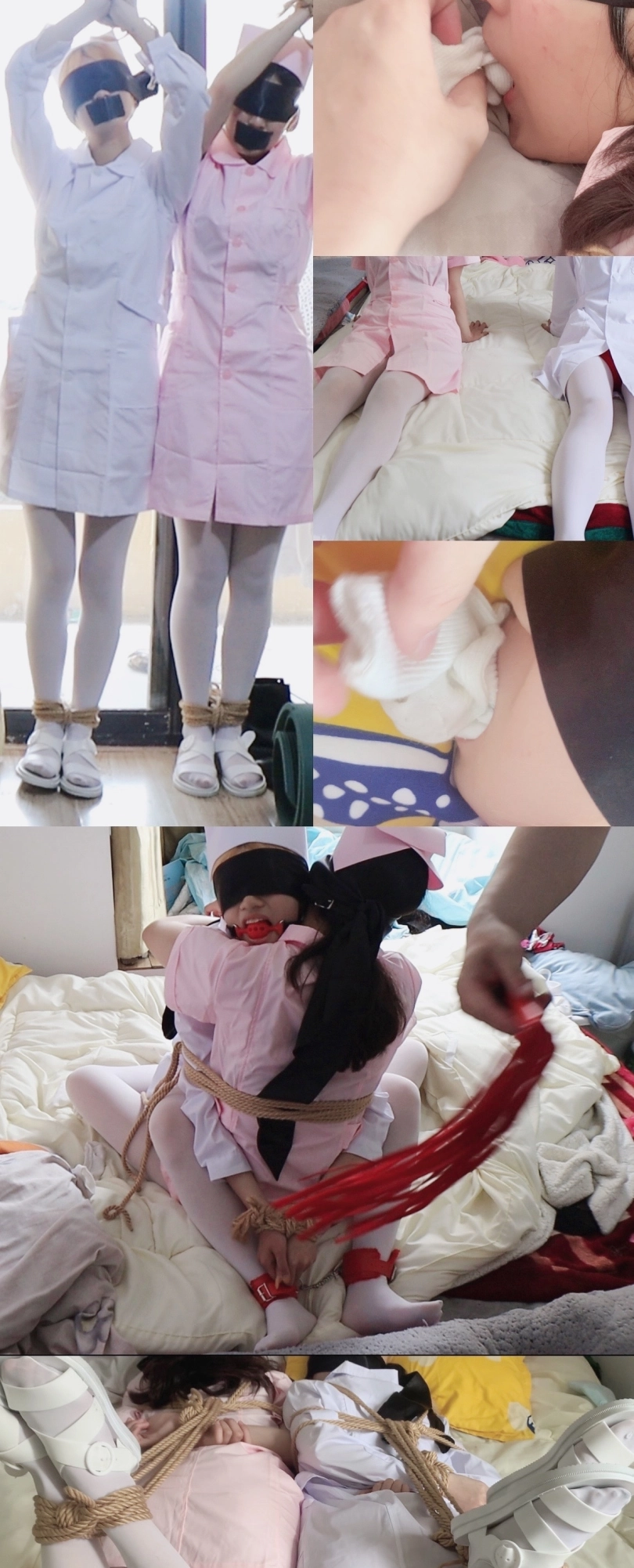 白粉护士姐妹CP感满满,那就一起绑起来吧首先两个驷马绑起来,然后开始寻找两个护士姐姐的敏感痒点,慢慢的抚摸上去,身上白丝脚上慢慢的一点一点的探索,搞的两姐妹翻来覆去地喊叫,拿起鞭子抽和棒棒tj可爱的护士姐姐们,脱下护士鞋,把四只脚抱在一起挠痒玩,害的两护士姐妹不停的躲闪,嘴里呜呜叫着反抗,对了 肯定要把两位护士姐姐的嘴巴堵上呀,护士姐姐们知道去跑不了,很乖的张开嘴配合的是塞上了四只白丝小脚不停的乱晃,把棒棒放到脚上给你们好好按按摩,