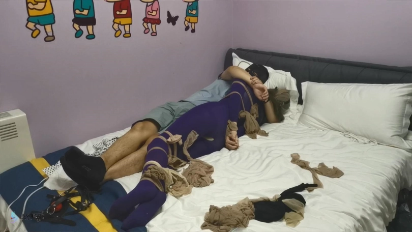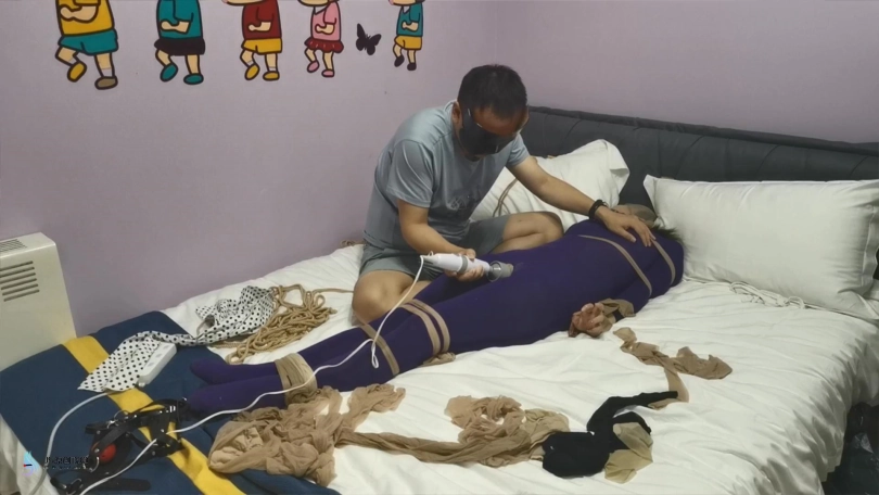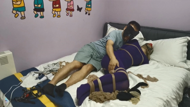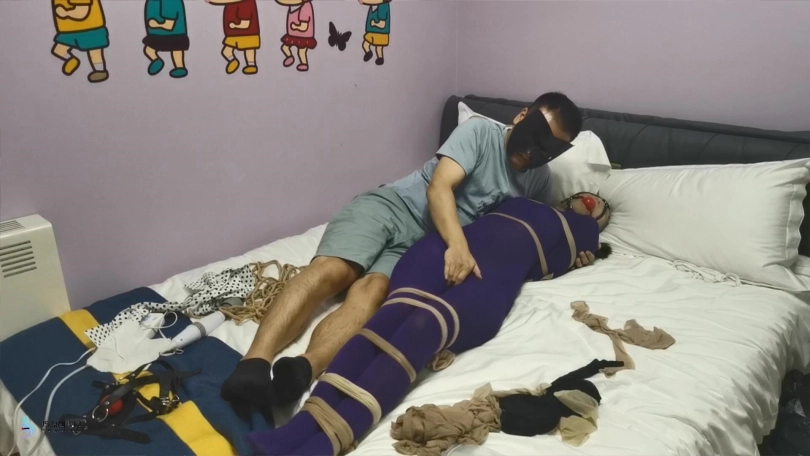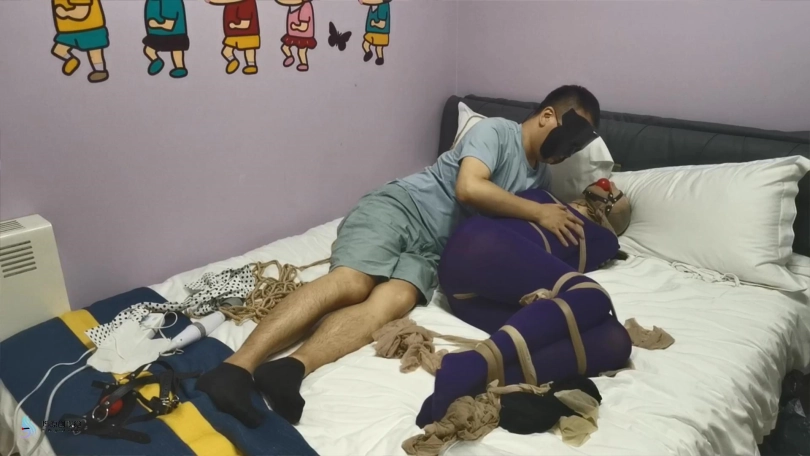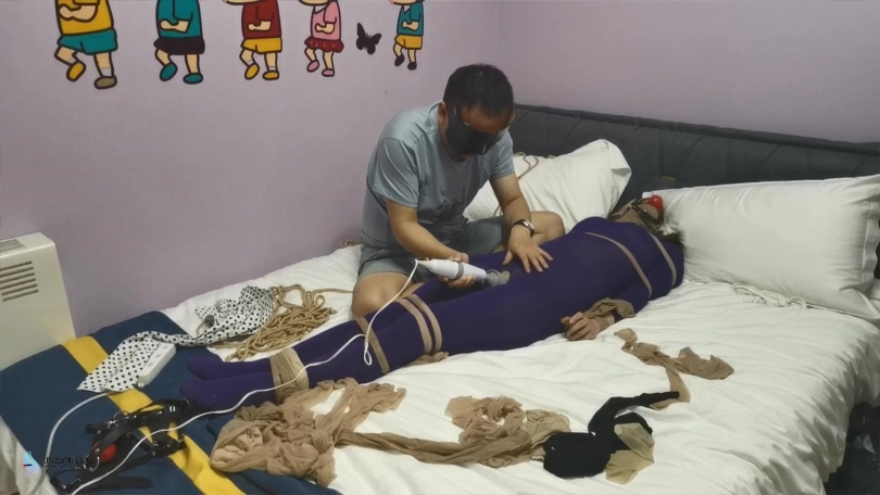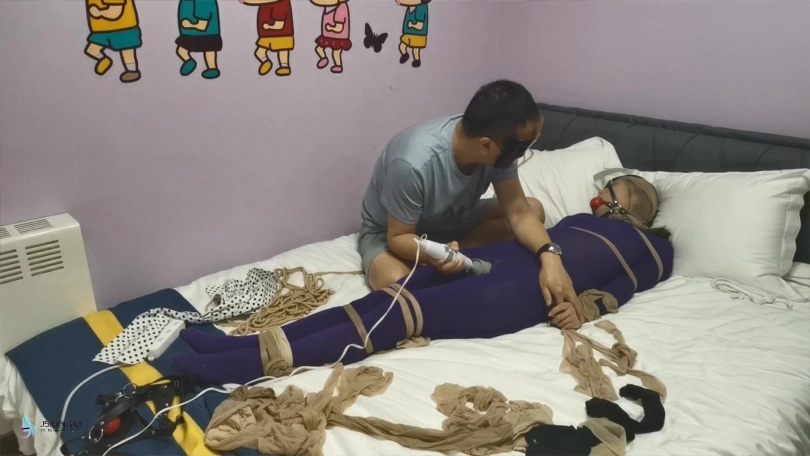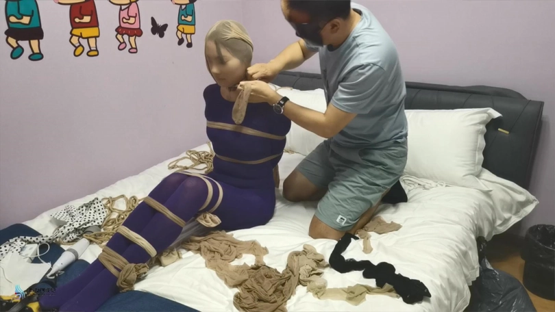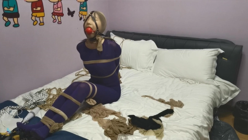 【JS】妙彤 紫色丝袜连体衣丝袜捆绑丝袜套头马具型口塞棒棒强制高C