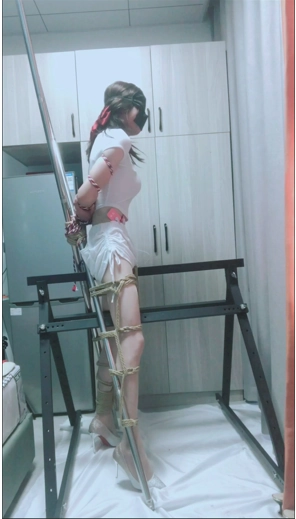 家里闲置了两根长棍子,本来想X型缚的,结果捆好腿之后腿部都失去了活动的能力,所以导致双手很不灵活,加上很久没有玩三角架了,忍耐力下降,捆绑好之后只能脚尖顶地,所以只能简单的束缚一下双手,加紧练习一下下次试试能不能捆好,两种姿势都是比较难受的,捆绑过程也挺消耗体力,加上电击片都在无时不刻的折磨着自己,拍好之后没有多余的体力拍摄其他方式的束缚了。