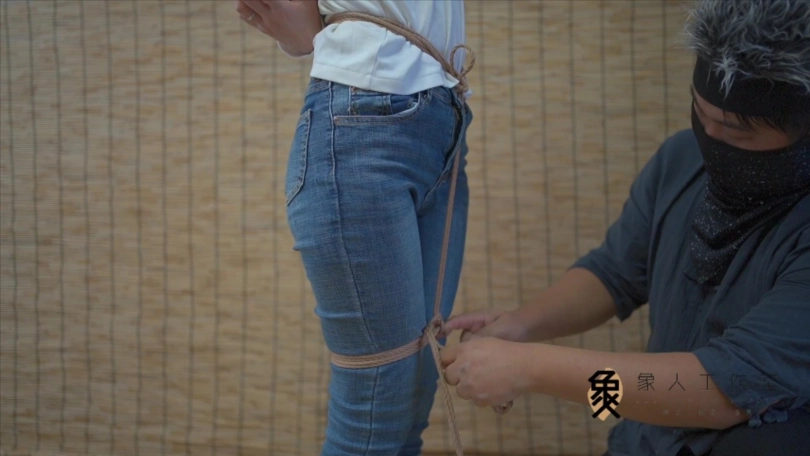 【象人】人妻Miya- 日式并腿紧缚+深入抚摸+5cm超大口球,驷马吊缚,紧身牛仔裤+小白袜。