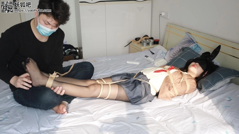 梦泪的cos的麻衣学姐简直就是麻衣本衣,她自己都说这衣服简直就是为她量身定做的,说实话在这双黑丝美腿面前我也很难把控住自己啊。这是她在这边休息了一晚之后第二天早上刚睡醒就开始要被我绑起来了,然后就是上下齐手了,这还是第一次拍摄所以没好下手太狠,只能不停的调弄她敏感的地方。后面抱到客厅把jiojio吊起来,36码的小jiojio在手中翻腾,辗转玩弄。