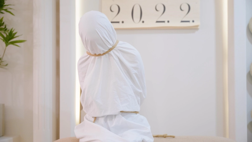美女被换装捆绑。最后被换上ol套装以后重新捆绑装袋