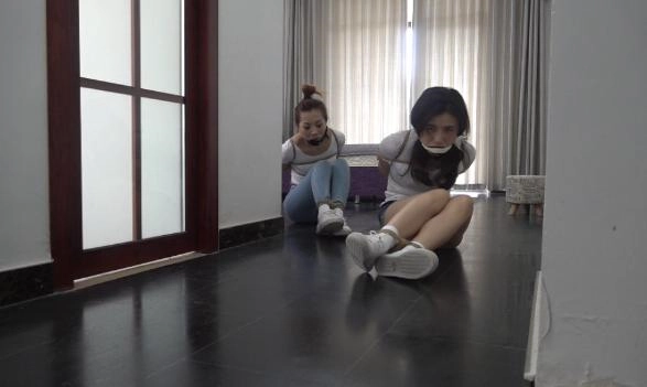 琳琳林艺被匪徒劫持tk,丝袜堵嘴,驷马捆绑,两人挣脱束缚后被匪徒发现,迎来两人的是更加严厉的捆绑tk