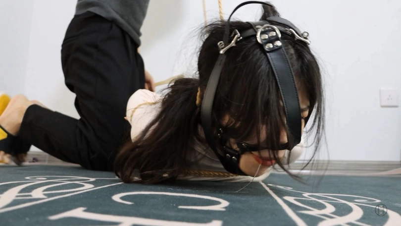老板打电话叫小秘书来他办公室一趟,来了之后也没多说话,指着桌子上一瓶饮料让她先喝点水,然后小秘书问老板有什么事啊,话刚说完就晕倒在了沙发上。。秘书慢慢醒来,发现被驷马捆绑,背后的驷马牵引绳用绳子拉到横梁上,马具口球堵嘴,非常惊恐的挣扎,过了一会老板进来,拿着鞭子打小秘书,说你知不知道我为什么绑你,小秘书使劲摇头,老板说那你就在这好好想想吧,我来帮你想想,然后拿一个毛刷刷她的脚心,还鞭打她屁股。把她折腾一会后老板拿下了口球,秘书向老板求饶,老板说以前还以为你就是办事马虎点,谁知道你还挺聪明的,挪用公司这么多钱,这就是证据。秘书跟老板道歉,求求放了她。老板说我放了你你早就跑了还会还钱吗,得多折腾你一会。然后老板把她直立踮脚吊起来,说把你吊在这罚站,让你自己好好反省一下,米娅还会被老板怎么折腾呢,敬请期待下集。