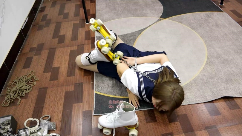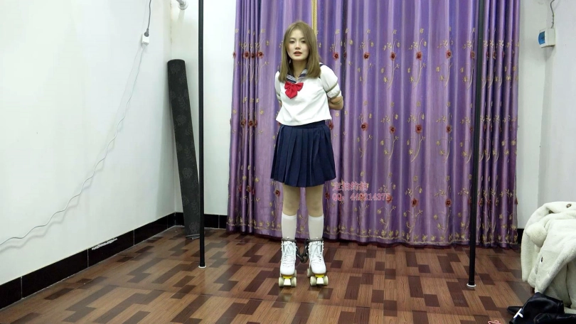 【子衿】晴晴水手服镣铐轮滑鞋,镣铐驷马拿钥匙解锁,五花口球吊缚,镣铐吊缚打屁股