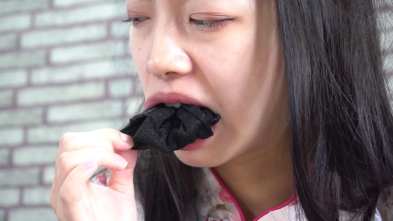 劫匪分别把一双臭烘烘的黑色锦纶丝袜和一双原味肉色连裤丝袜塞入珊珊和其男友口中,并在二人嘴外缠绕多圈黑色胶布和黑色弹力自粘绷带缠绕封严实。