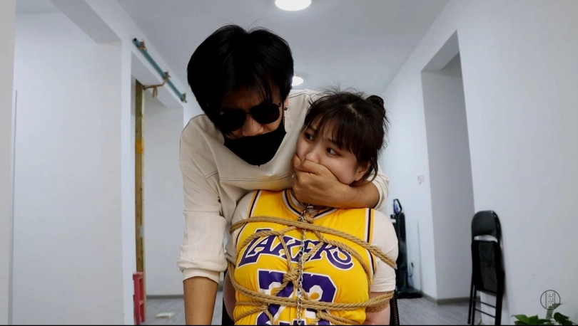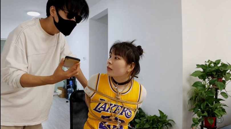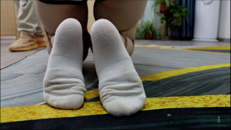 星宇被绑在椅子上,用绳子将双脚都翘起来敞开大腿,军哥在直播中扒掉了她的鞋子,露出了早已踩脏效果十足的原味白棉袜,星宇吵着让大家别看她的脚,但这并没有什么用处。