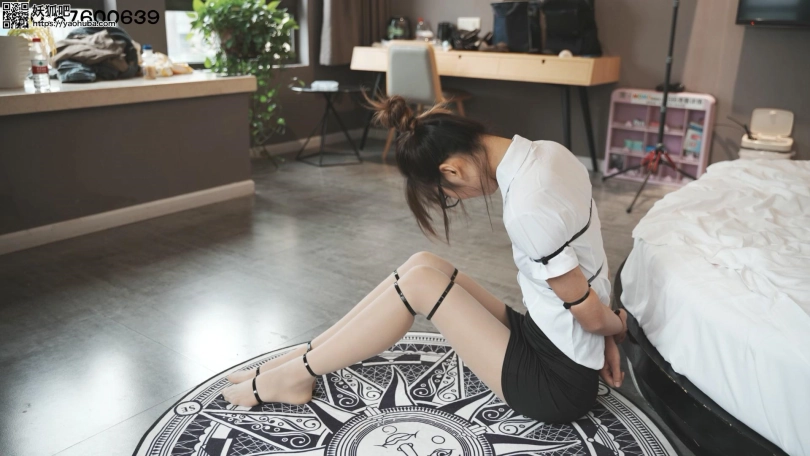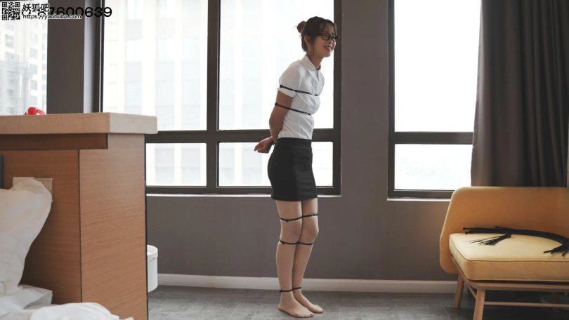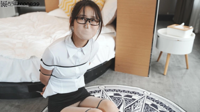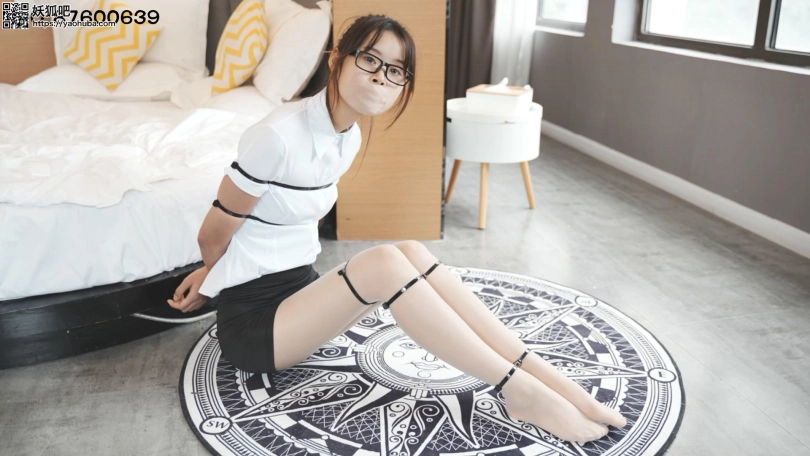 很紧的拘束,虽然简单,但是绝对挣脱不开。胶布封嘴和鼻夹同时用,控制呼吸很有效果。