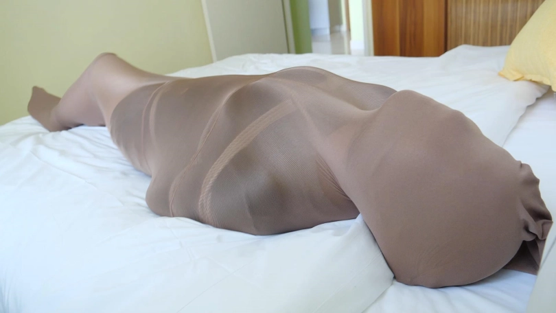 到了之后女主角发现门没关,于是走进去,发现有个人被绑了还套在丝袜里面,于是她赶紧过去松绑。