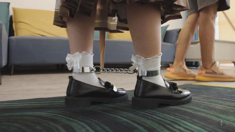 而后,先生便以限制步伐为由为她锁上脚镣,确实,有了脚镣的限制和内裤塞口,清无法顶撞先生,步子也淑女了不少,然而,先生对此仍不满意,看来他真的非常严苛。