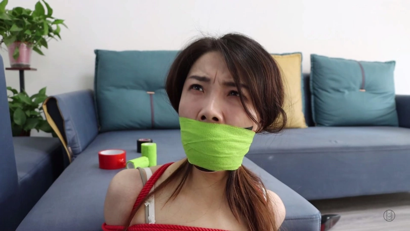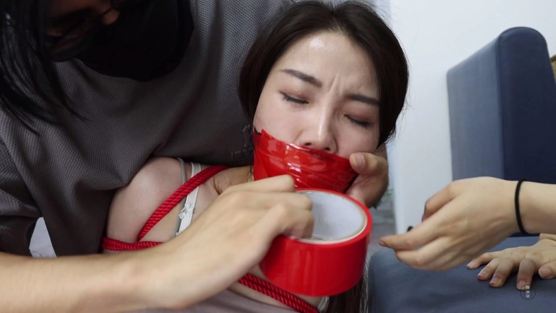 看点:细致塞嘴过程,胶布绷带多重缠绕封嘴,女女挑逗。