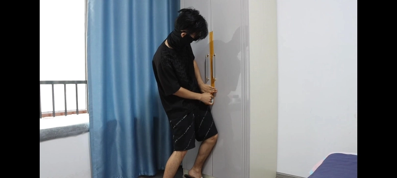 美女在家休息时,突然一个蒙面男子闯了进来,并持枪控制了她。男子用胶带将她绑起来,过一会儿男子竟然躺在床上睡着了,借此机会她悄悄得走到客厅,试图拨打电话求助,没想到被男子发现带回屋里,之后遭到了粗暴的全身胶带捆绑。男子搜刮完钱财后,竟然还不满足,将美女用胶带封在了柜子里。。。