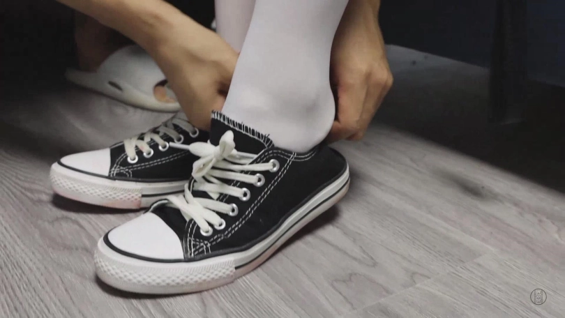 然后小清顺从的将这双船袜穿上,摸了摸自己的白袜脚,舔了舔嘴唇,期待着一周后的调教。