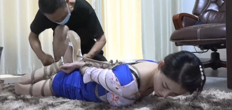 柳洋是一家公司女秘书,这天刚来到办公室,发现办公桌上有着一个自己的快递。开心的将包裹打开,但是里面的东西让自己大吃一惊,原来里面的东西居然是几捆绳子,还有两款纱布。正疑惑是谁寄过来的时候,老板这时来到了身后说:“看来又买了新绳子了呀,来让我为你试试这新绳子怎么样。”接着将柳洋双手扭到背后,让她趴在桌子上,用着绳索将她的双手捆绑起来。柳洋挣扎着说:“哎呀!你干嘛我也不知道这是谁寄过来的,还要工作了!”(工作?什么工作虽然不知道是谁寄过来的,但是寄过来了不得捆起来玩一下怎么行。)老板:“什么工作,今天给你放假了!”随后将柳洋捆绑起来,将丝袜慢慢塞入嘴中,用纱布将双眼以及嘴巴蒙了起来~