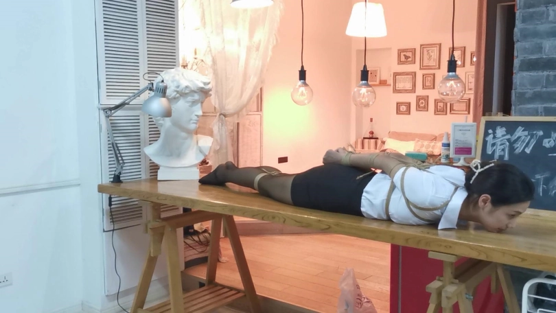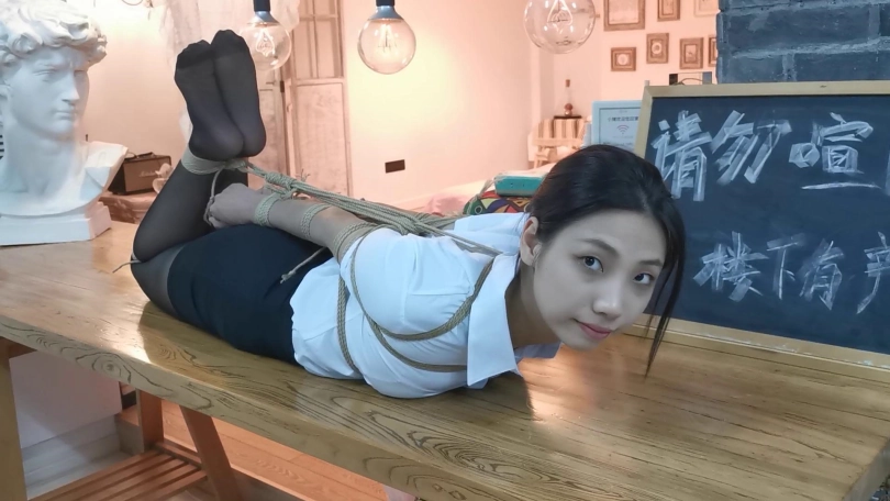 小松是雨琪的同学,同为舞蹈生,身材和颜值都是顶级的,柔韧性更是好的夸张,绑极限欧式驷马感觉很轻松,这次的束缚也很严厉,极限欧式驷马的状态下为了防止出现挣脱口球的情况用脚上的绳子连接口球的皮带,挣扎的时候口球会拉紧。这种情况下小松居然挣脱了腿上的束缚,不过代价就是小松注意力都在努力挣脱束缚上面,口水一直流没停过,拍摄临近尾声的时候的口水都聚集了一大滩,灯光下各种反光,非常有意思。觉得小松完全还有余力,后面会加大难度。