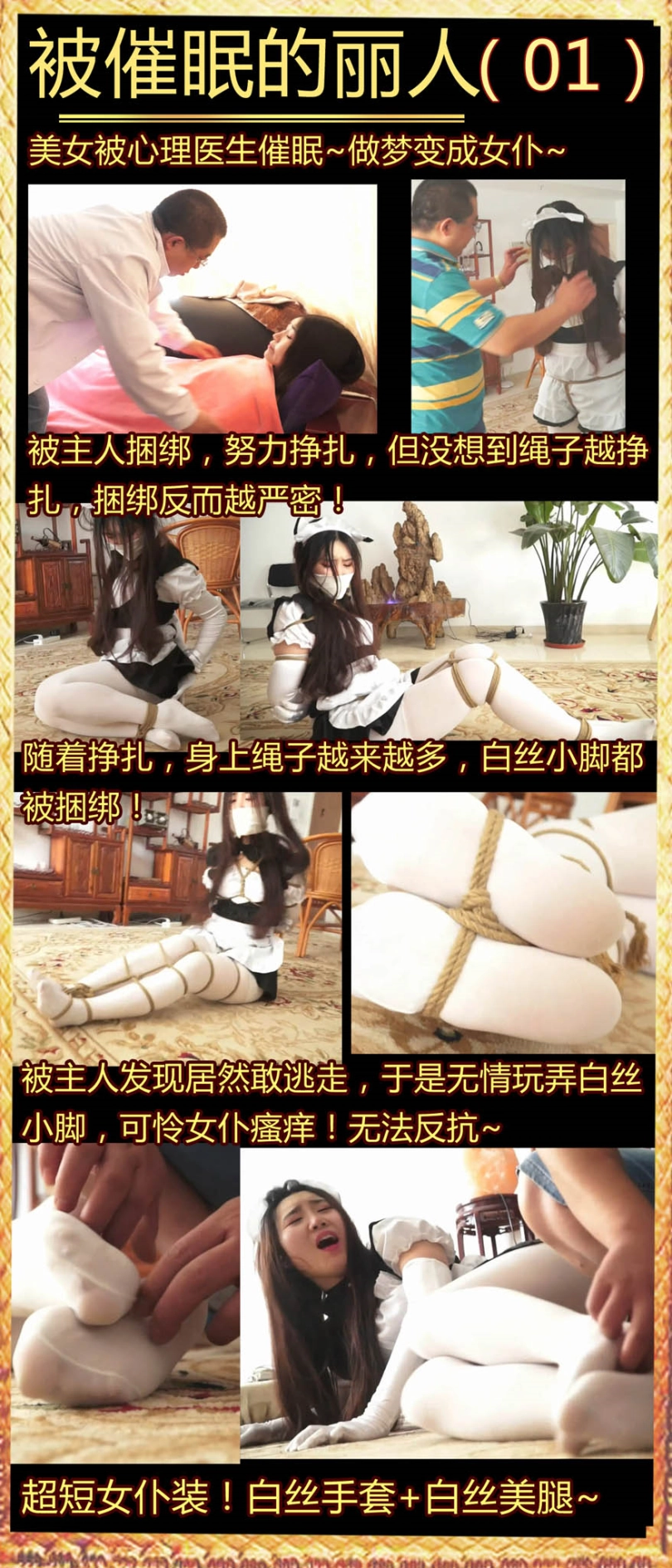 【逍遥】《被催眠的丽人1》美女被催眠成白丝女仆!被越挣扎越严密的绳子捆绑,白丝脚被无情挠痒~