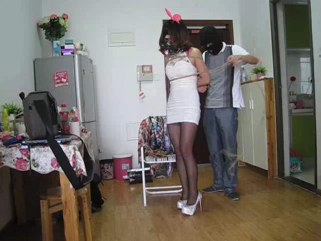 小伊丝巾堵嘴捆绑,女孩小伊回家后,不慎被歹徒闯入,各种丝巾堵嘴蹂躏。