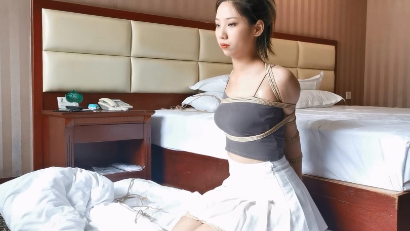 舞蹈生小松,以前没发现小松身材这么好,这身小吊带真的是把好身材都给显出来了,把小松直臂紧缚跪在地上,身前加一道绳子牵引,如果小松想直起腰来就得忍受绳子勒紧丰满的胸部,最后再给她戴上一个大号口环,放置在宾馆里,小松本来口水就挺多,在大口环的作用下口水哗啦啦的往下流,把裙子都打湿了。