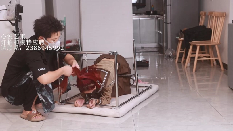 【心悦艺束】少女初体验のK9强制鞭打。火红发色的少女,平时总是火爆的脾气,这次可是被好好治理了,K9完美的拘束住身体,头发也被牢牢固定,只能默默承受主人的鞭打和棒棒的刺激。