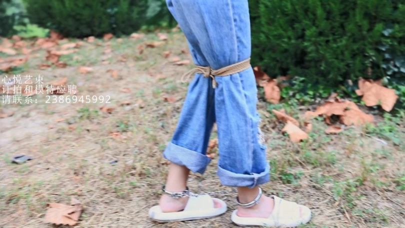脚上戴着仅有10cm的镣铐在野外行走,最后又被我绑在树上挠痒痒。以前也就在绳艺小说里面经常看到的情节,中间来的几波人增加了几波刺激。