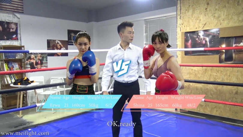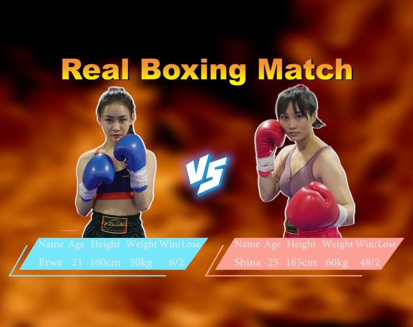 Shina used to be a professional boxer. Erwa is an amateur boxer. They were about to start a real boxing match. During the match, there was no editing and dubbing, and the shooting was continuous from the beginning to the end.5 rounds of 2 minutes each. 2 minutes break between each rounds.