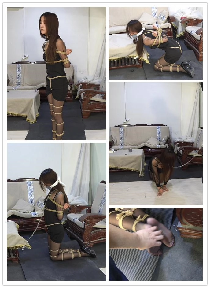 小华开始捆绑女老师(嘴巴粘住,眼罩蒙住),挠脚心,打屁屁,