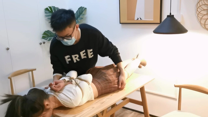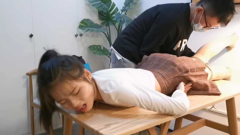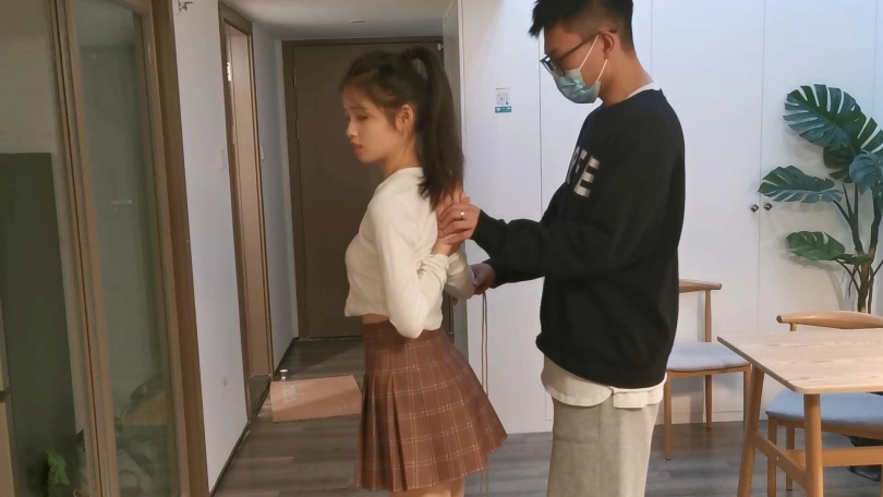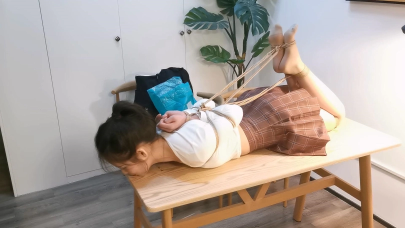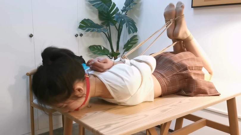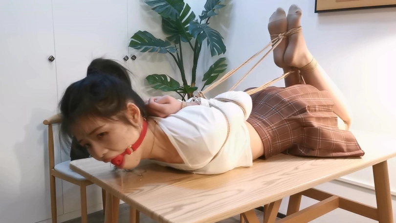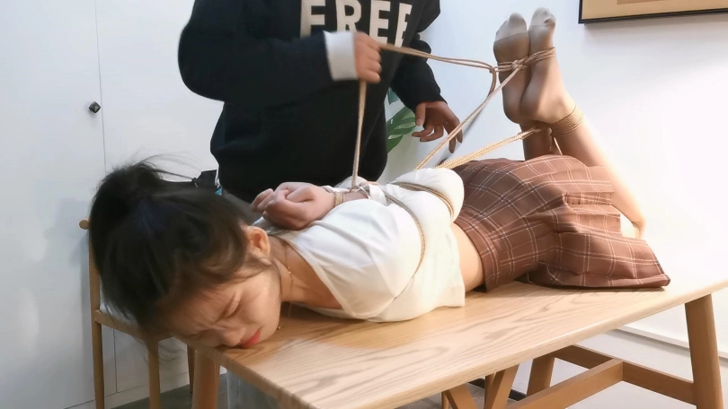 小郭长得非常像现在的演员张婧仪,就像是一个模子里刻出来的一样。小郭的柔韧性是很不错的,这次就用最紧的后手观音驷马加超长时间放置来考验她,结果小郭最后绑的崩溃了,戴着口球只能呜呜的哭,最后解开一下就大哭起来了,彻底给绑出心理阴影来了。