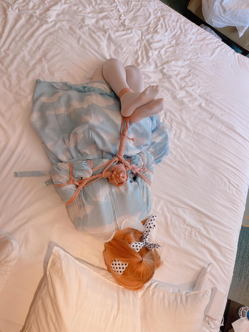 让茶茶穿上白丝和Lolita,结结实实的绑个后手观音,加上多层绳子带来的牢固驷马,茶茶的白丝脚底就乖乖翘起摆在人面前,随意玩弄啦~