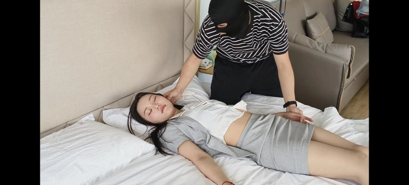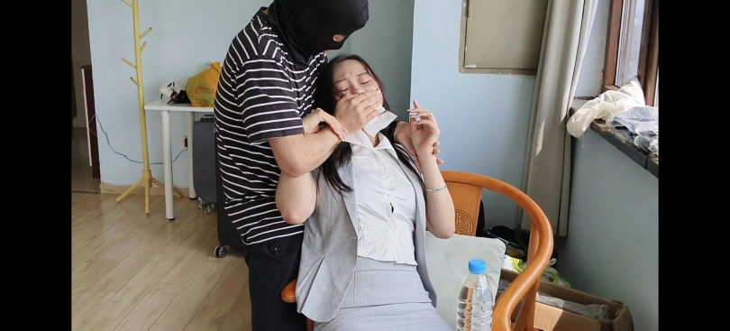 面具男又出来作案了,这次的目标是女秘书哈尼,且看她是如何被面具男迷晕翻白眼后玩丝袜脚的吧。