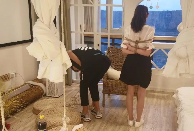 先将她日式捆缚起来,随后戴上口球,没想到果果脱缚技巧还挺熟练,一个人就挣脱开了..