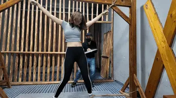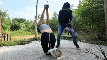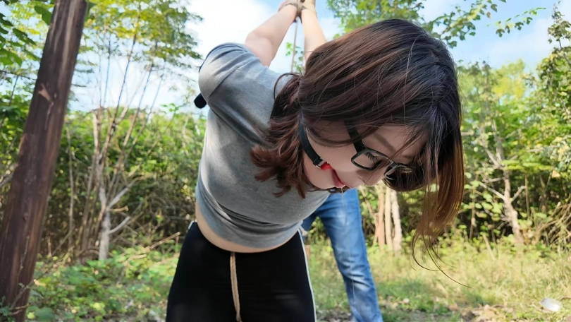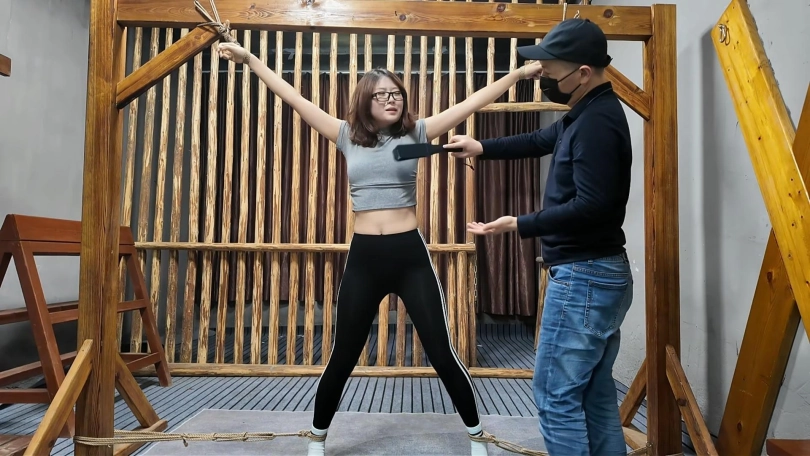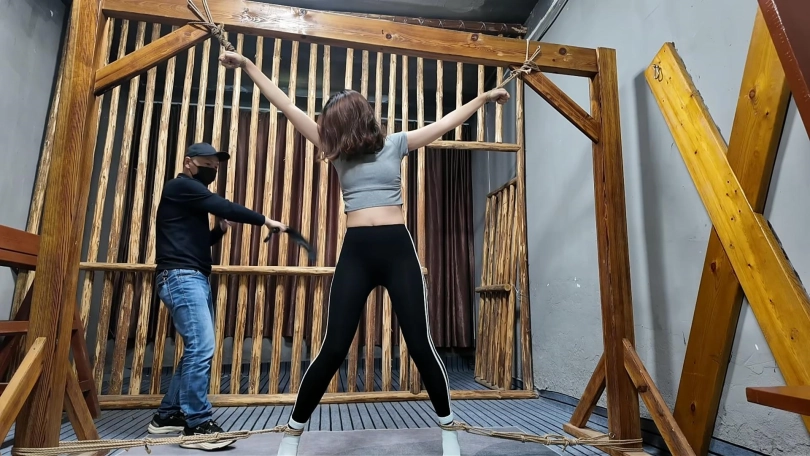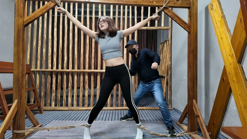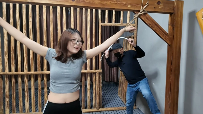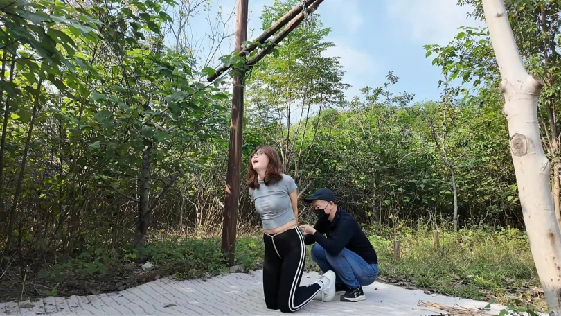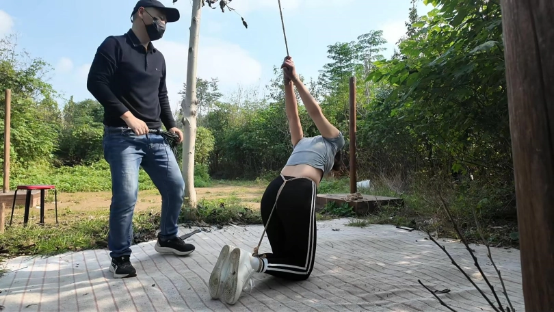 清晨河边小路上,晓琴身穿运动服跑步,被一位歹徒顶上,一路尾随至地下车库,捂晕放到车上带走,拉到一个废弃小院,绑到柱子上,晓琴大喊救命,被口球堵嘴,接下来,鞭打,挠痒,吊起来,老虎凳,变态男对晓琴实施了无穷无尽的折磨