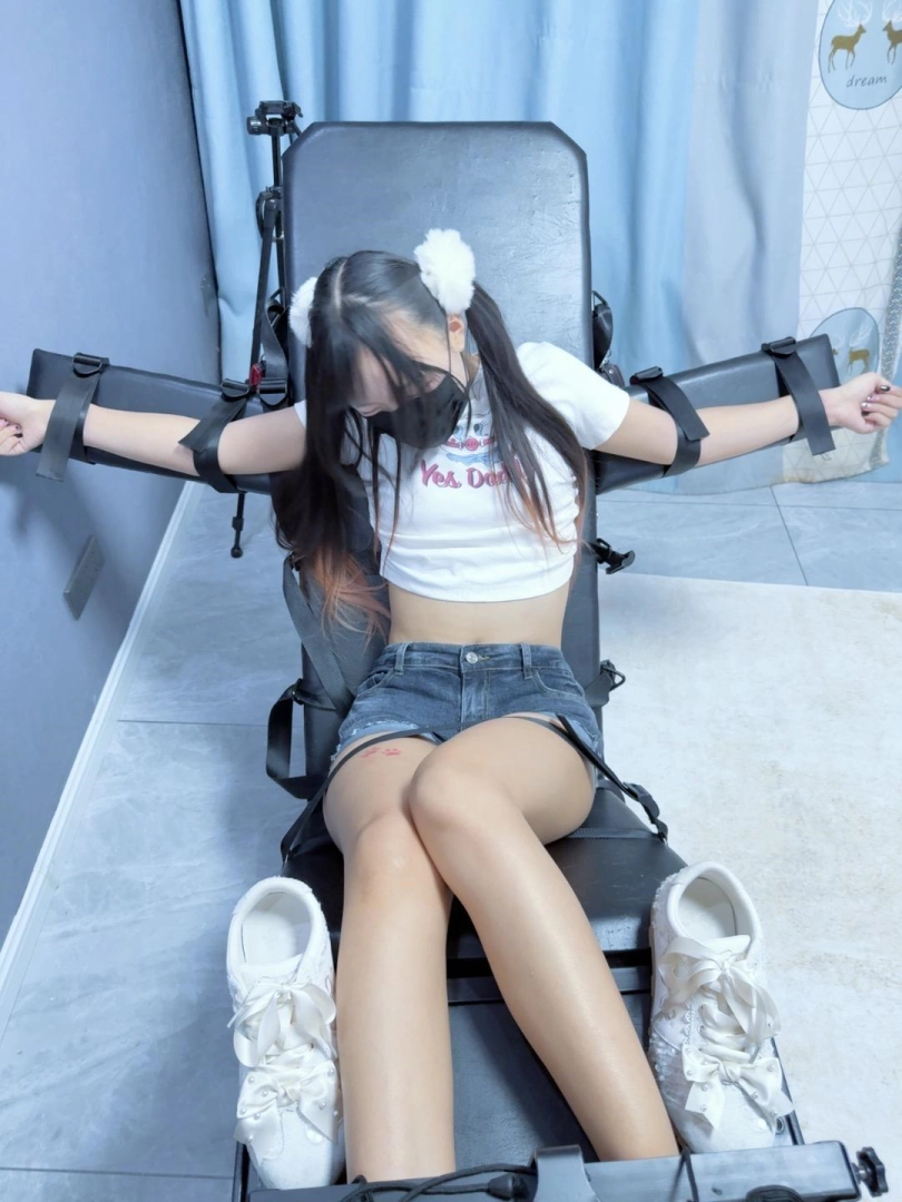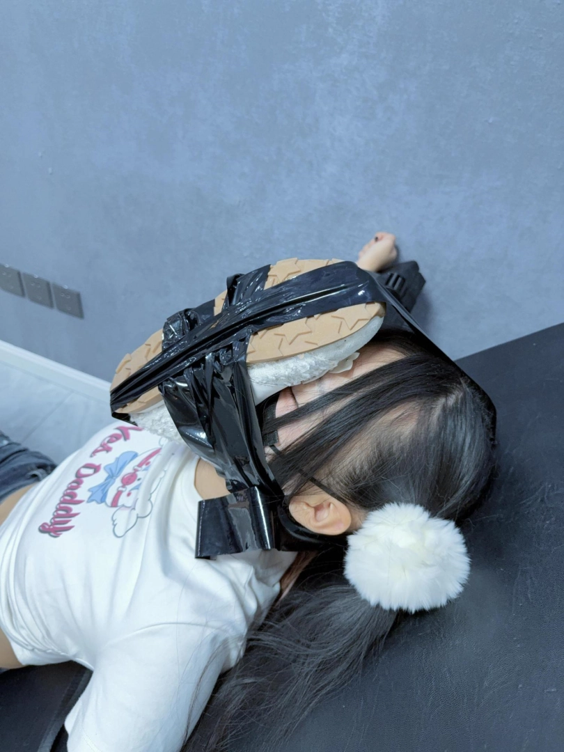 把妹子拘束在足枷重刑床上,鞋子摆放在足枷附近,进行简单的挠痒,并且用小红抽打脚底和大腿。在咨询妹子可否打一下肚子并获得同意后用拳头打了几下小腹。后面突发奇想,用胶带把鞋子扣在妹子口鼻处固定好,一段时间气味责后,拿出热缩袋,套在妹子扣着鞋的脸上进行呼控窒息。同时重复抚摸、鞭打、tk。值得一提的是后续剪辑视频中发现妹子在呼吸限制中居然湿了,一直在夹腿,事后和我说意识有点模糊但是很舒服....