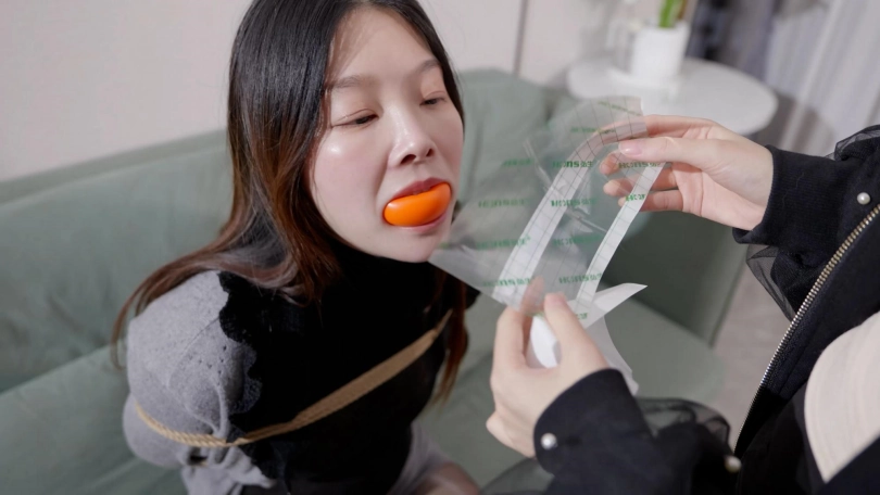 【红鲤鱼】女女海绵球堵嘴医用胶布封嘴第二弹