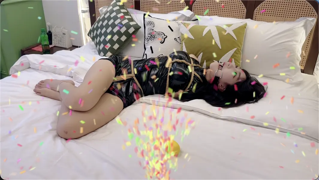 (第一段)玩具享受放置挣扎:股绳+直臂并肘驷马:(连接绳直接连接手腕和脚踝,不要从脚
