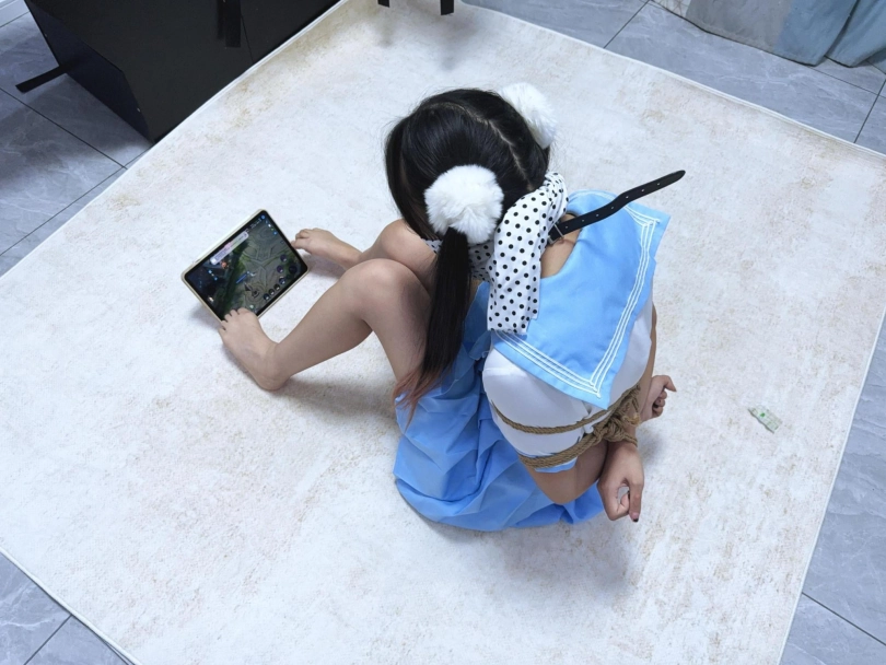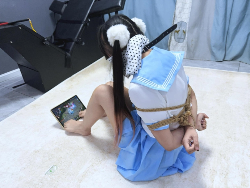 游戏挑战回!挑战内容是在日式捆绑上半身+口球堵嘴+8层丝巾布条蒙堵的状态下光脚用脚趾打王者荣耀1v1随机匹配solo~不论输赢一个头额外奖励100元工资外奖金,输了要被 固定在刑床上疯狂挠痒TK!