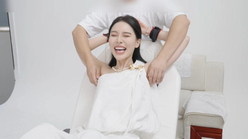 清淑现在是自己创业是一家美容店的老板偶然机会接触到挠痒痒拍摄,由于她经常去按摩,她觉得被挠痒痒很舒服,又很好笑.很好玩,确实她非常怕痒全程不停笑,我都怕她喘不过气,是那种又怕痒又还想来那种,这次拍摄已经是她第三次了,拍完这次她还想来,不过效果是真心不错。