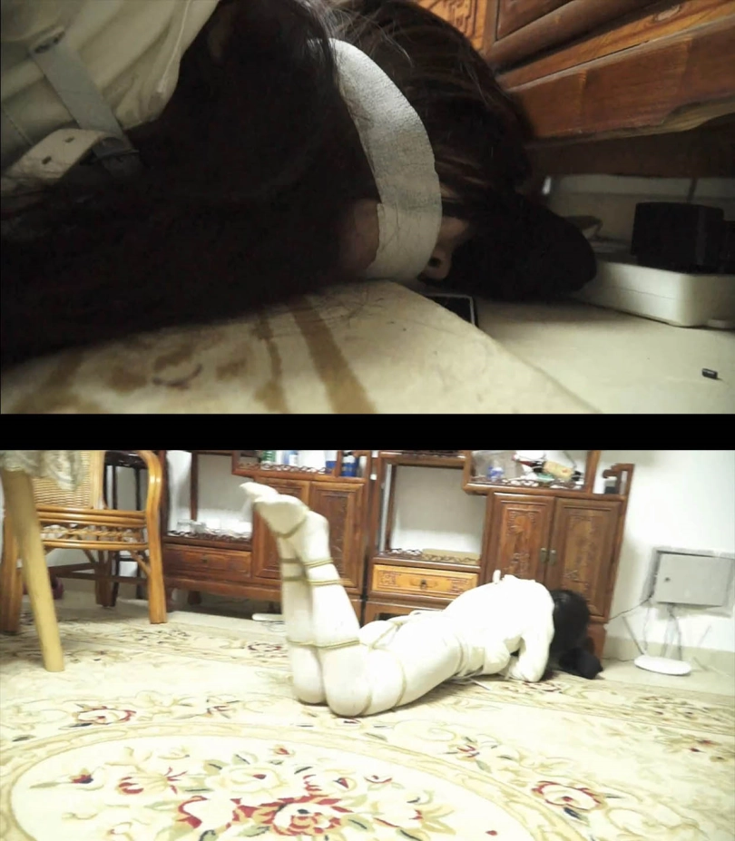 女警慢慢的蠕动身体想杯子爬去,被捆绑成球状的她这样移动慢的简直如蜗牛一样。没把她活活累死。