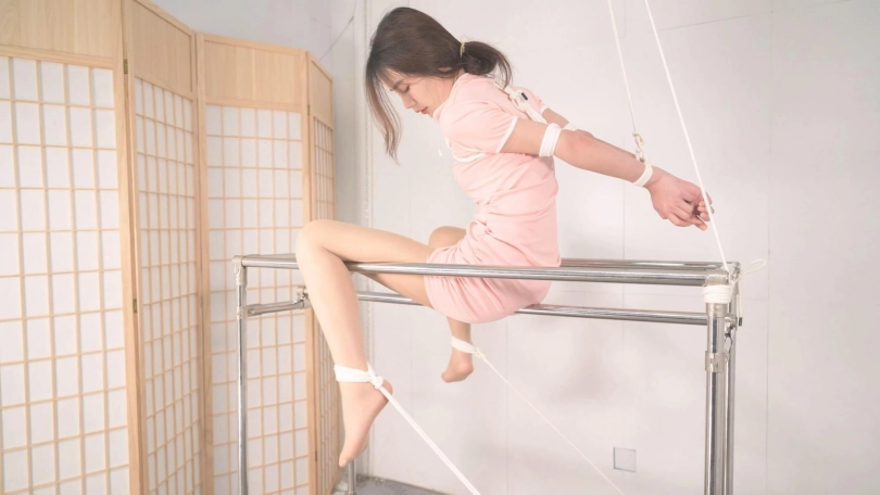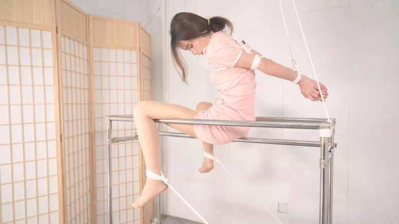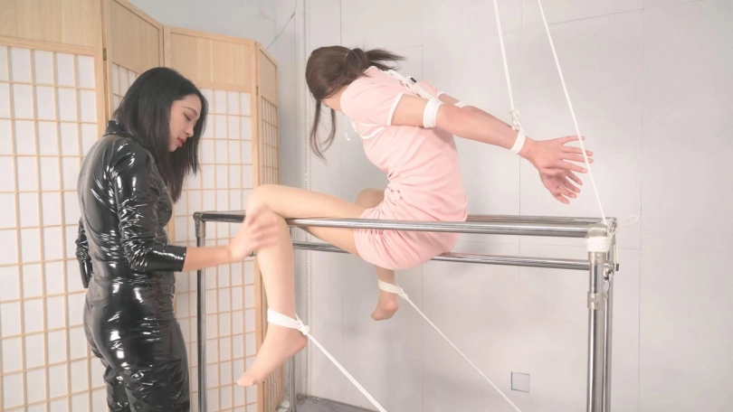 【撒琅制造】男女双S捆绑铁架分腿调教言妍--旗袍、肉丝、女王装、百合爱抚、刺轮、TK、坐单杠
