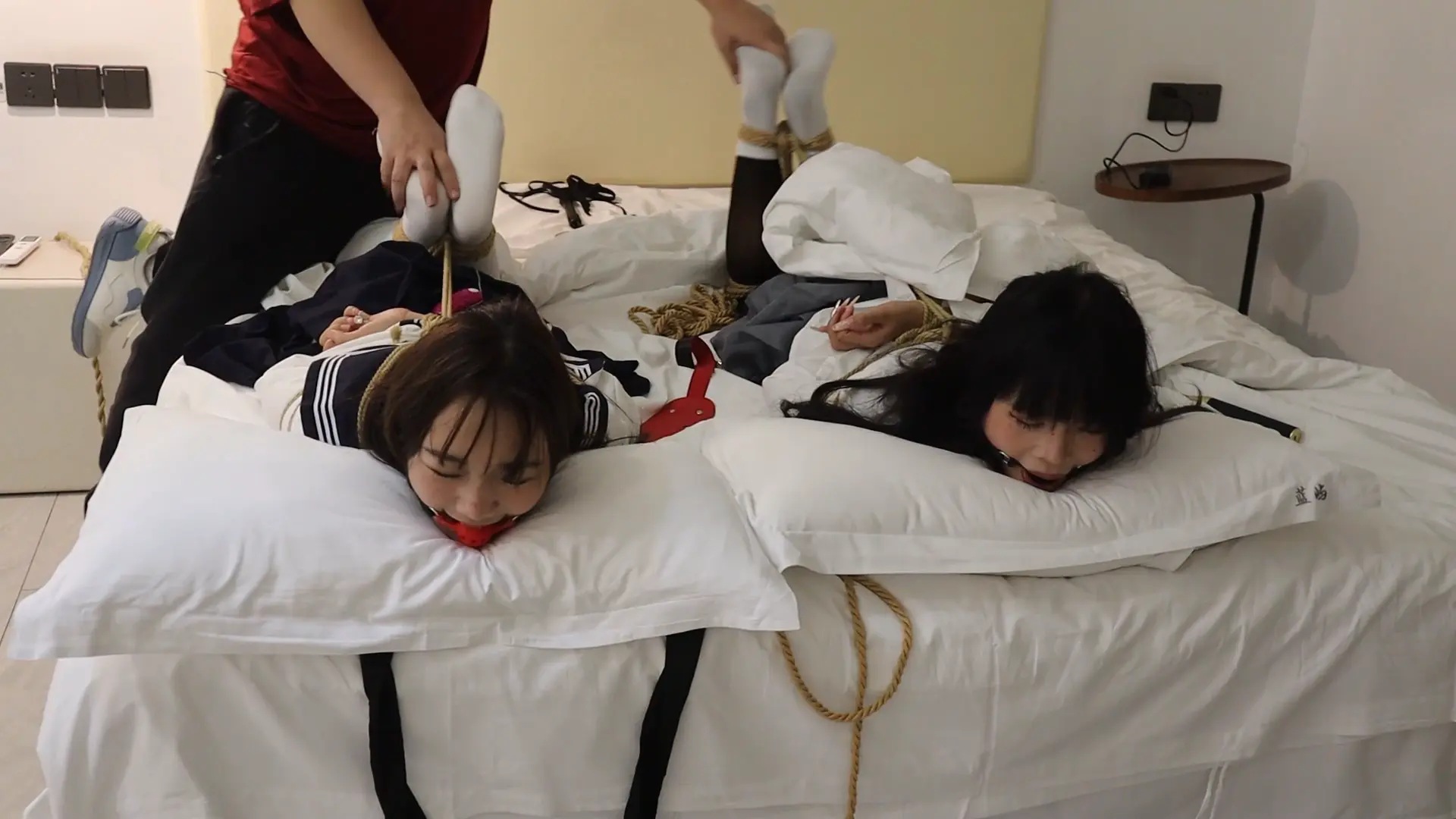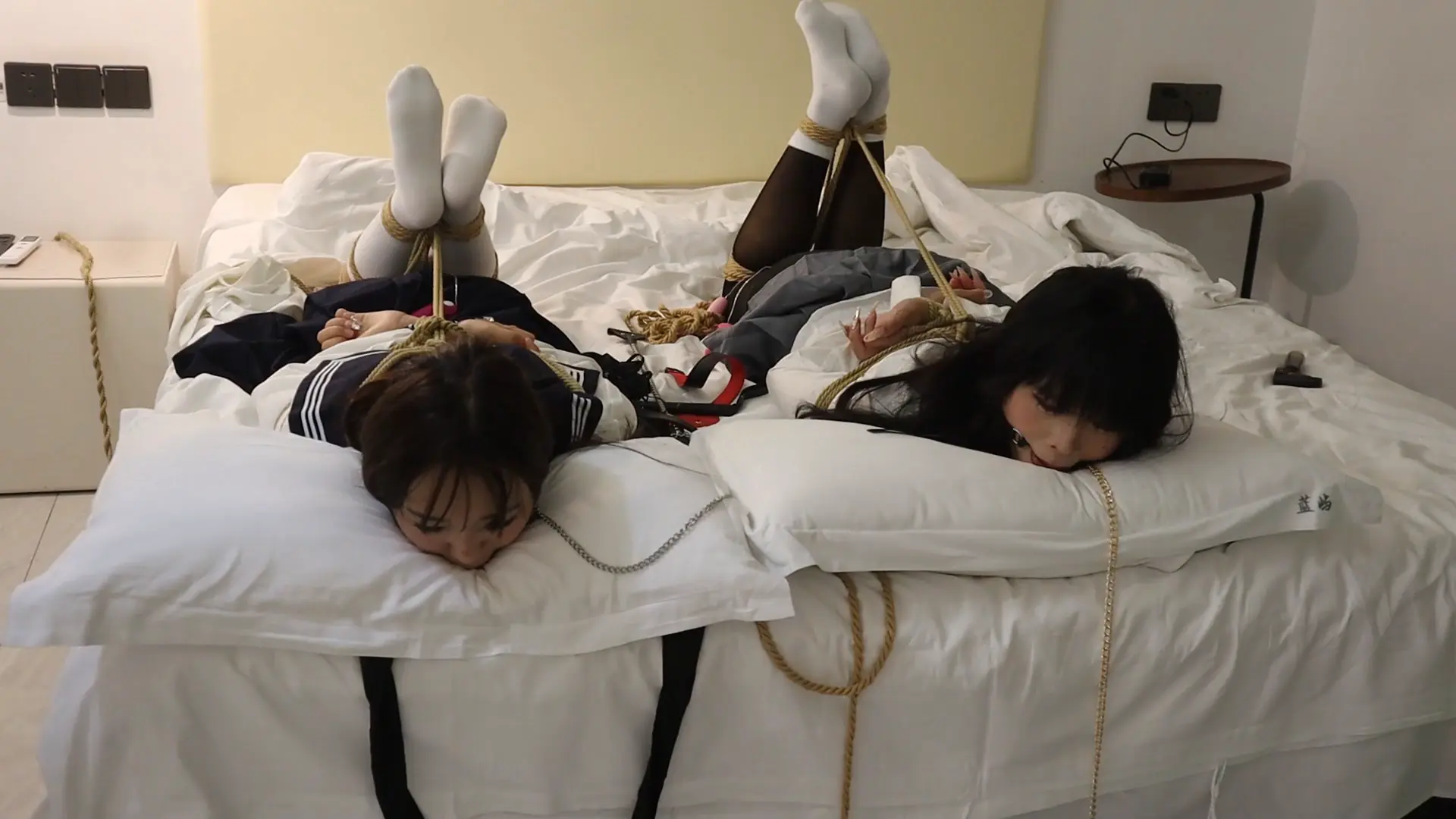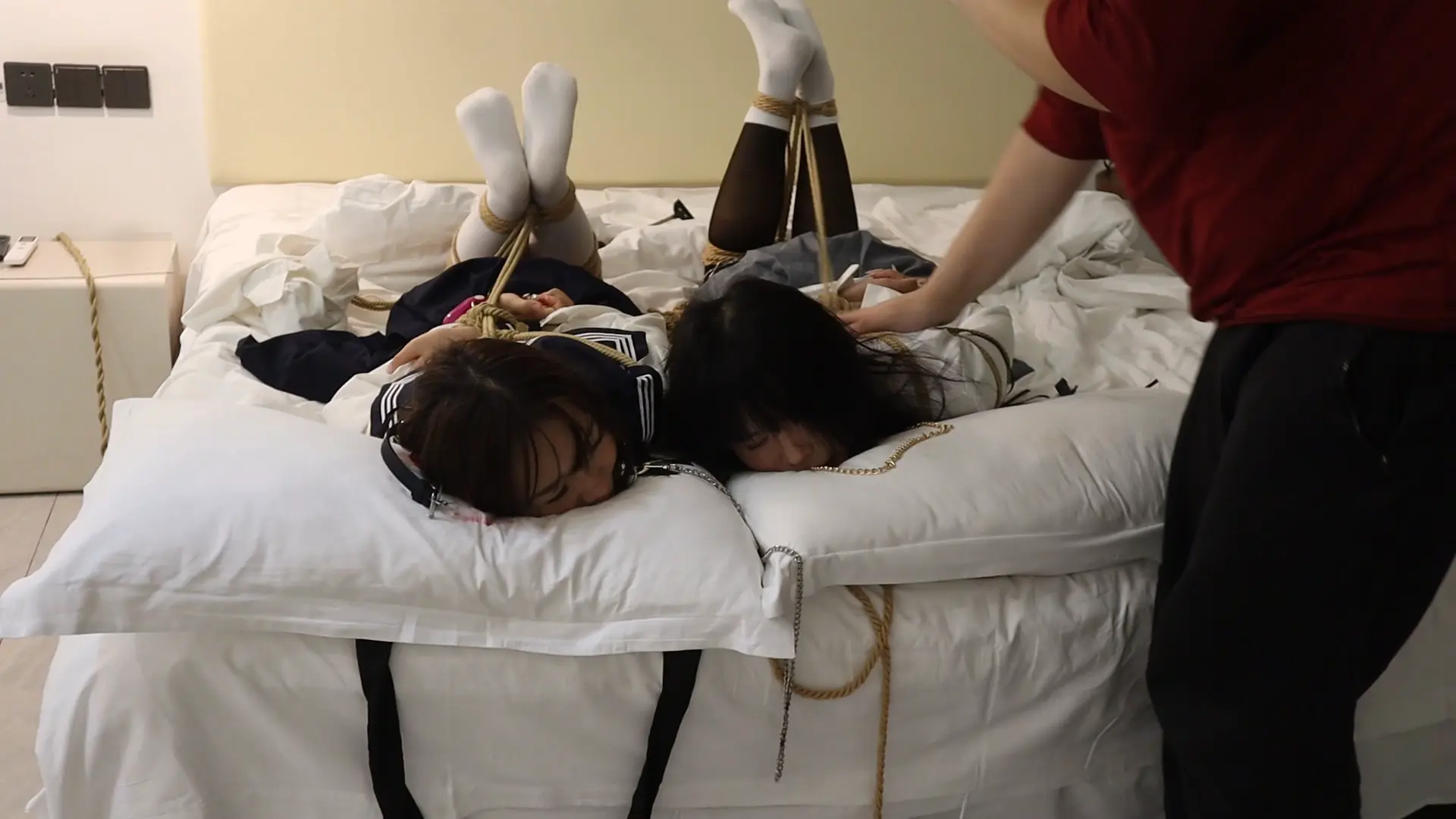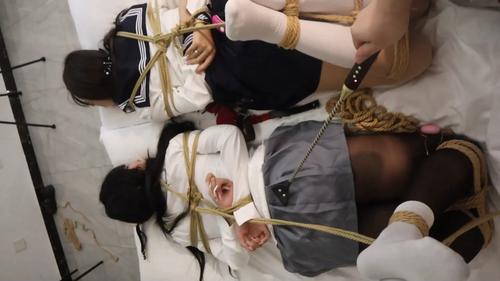 【荷仙少女】《陌生男在302房间的学生姐妹捕获调教》3 驷马绑学生姐妹,安玩具振+电击鞭虐+强迫语言羞辱口水+TK玩弄 最后被玩弄几乎晕厥学生姐妹意识模糊重复说:欢迎主人来玩我们两个