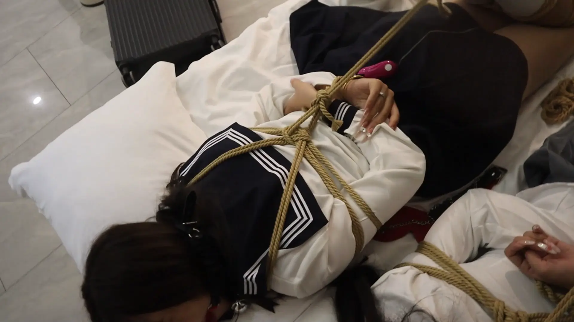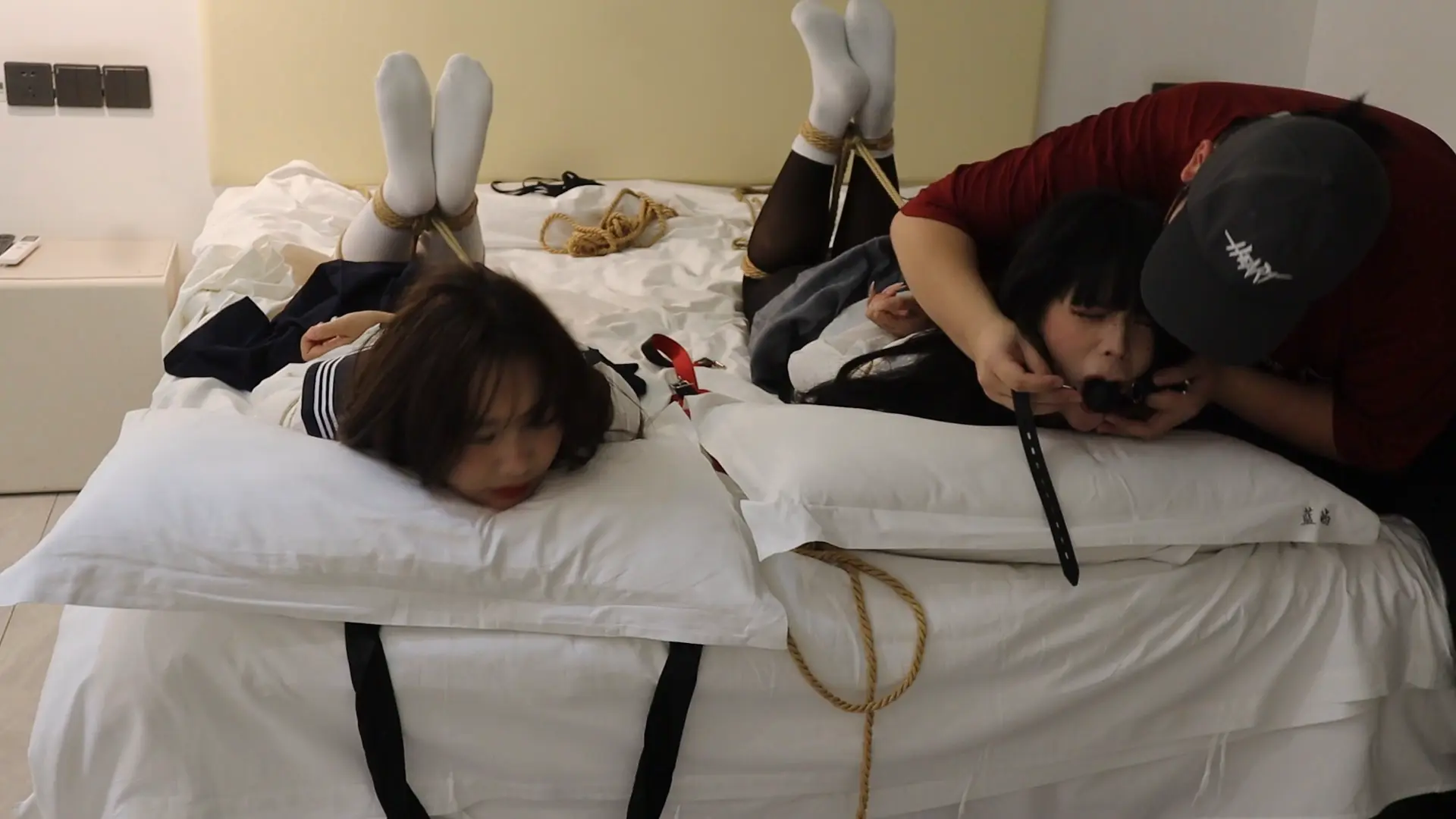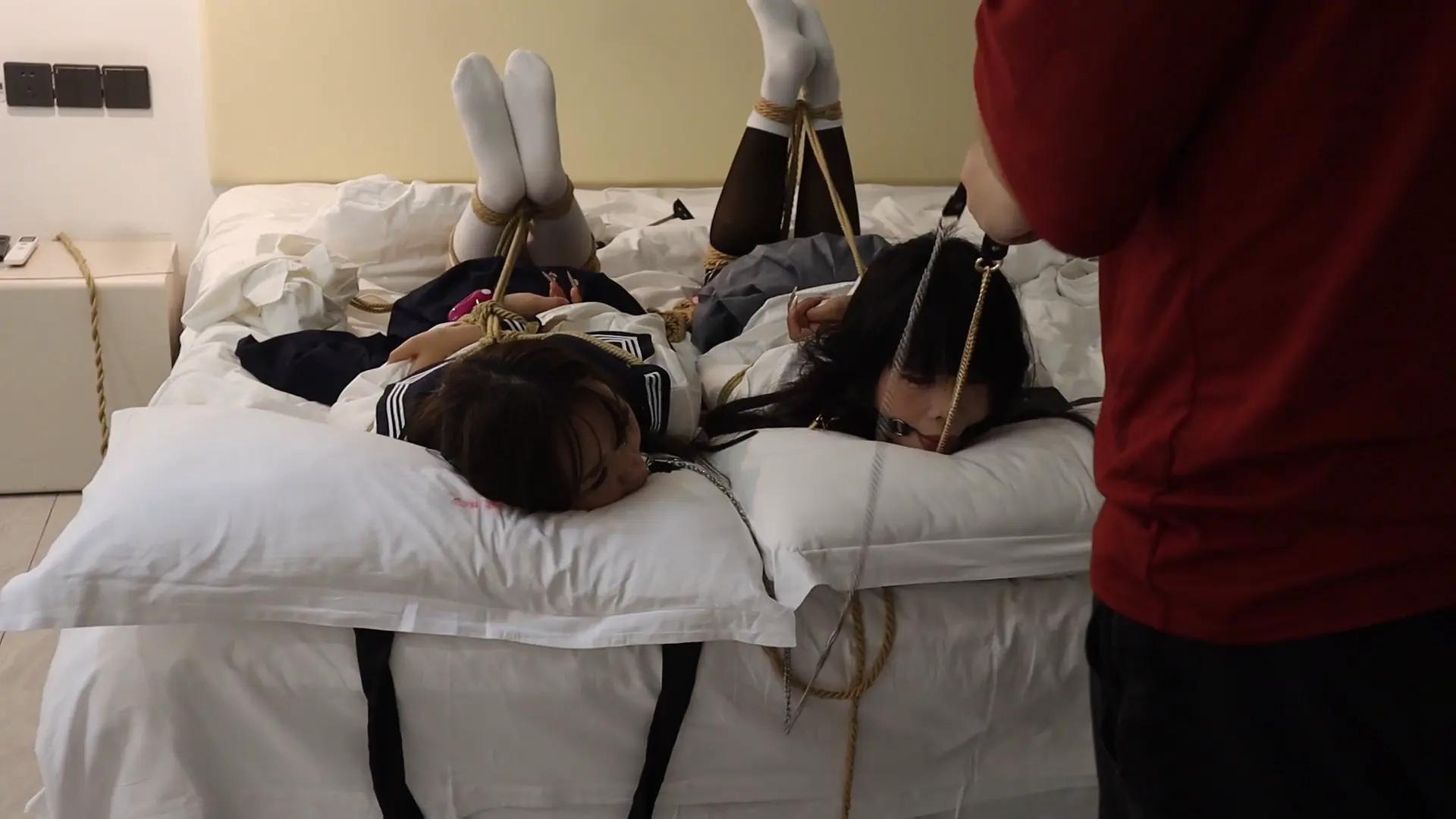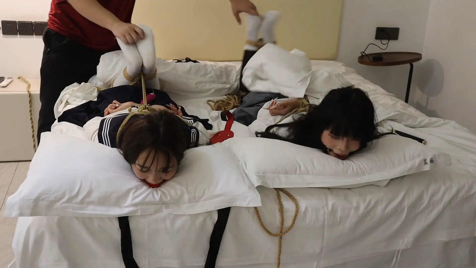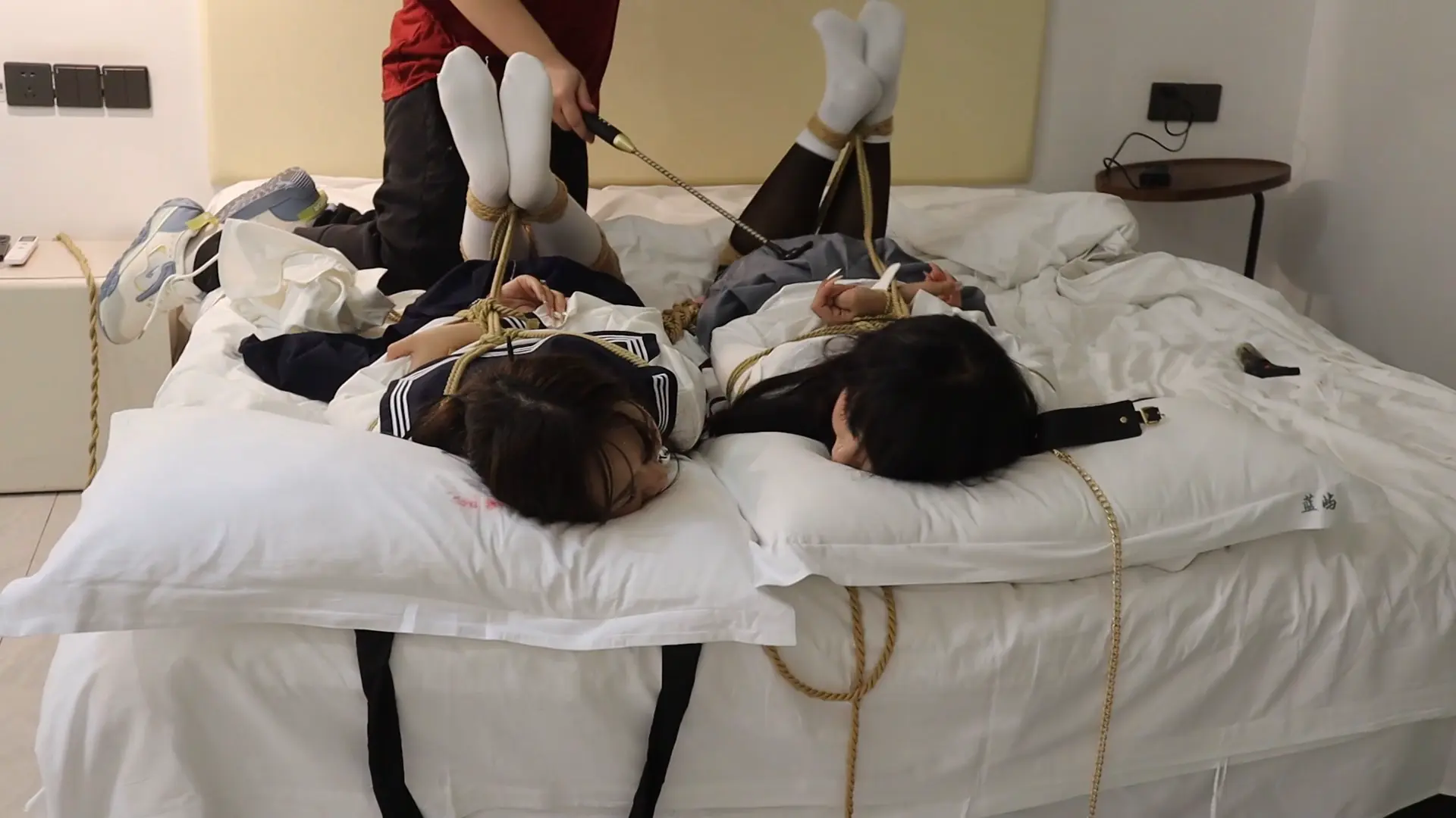 【荷仙少女】《陌生男在302房间的学生姐妹捕获调教》3 驷马绑学生姐妹,安玩具振+电击鞭虐+强迫语言羞辱口水+TK玩弄 最后被玩弄几乎晕厥学生姐妹意识模糊重复说:欢迎主人来玩我们两个