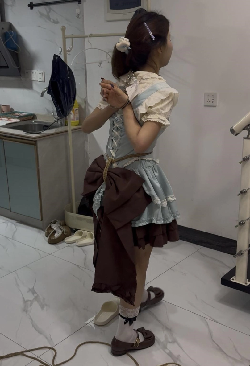 【内八】Lolita女孩甜巧却极度反差被绑成粽子 极限倒吊直臂