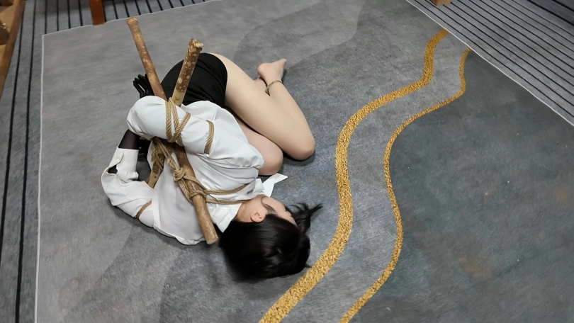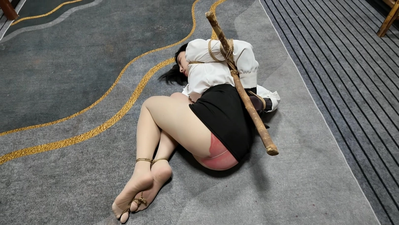 女友被绑到刑椅上,下面固定好震动,脚趾用细绳捆好,好好享受吧...跪在地上,后背被十字架固定,双脚捆绑,这个姿势是相当难受的