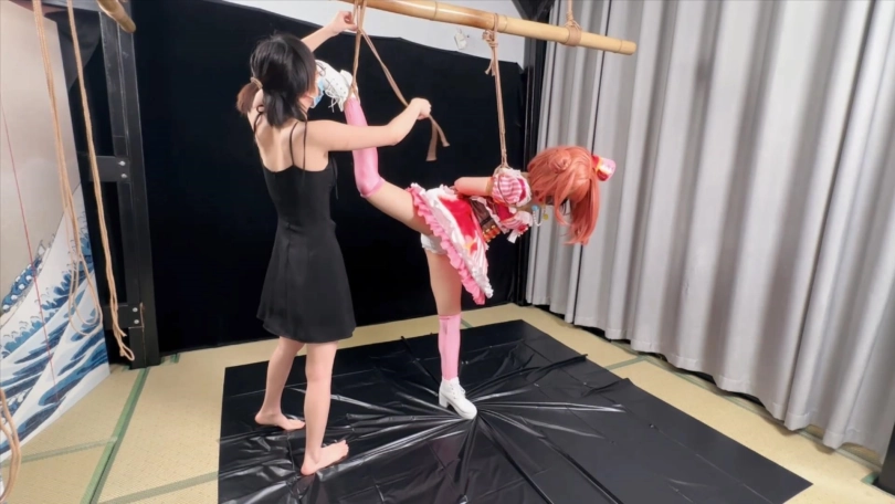 【象人】cos+女调女 小0&嗷嗷-cos上原步梦,女调女,单脚吊缚下的墙高憋尿!