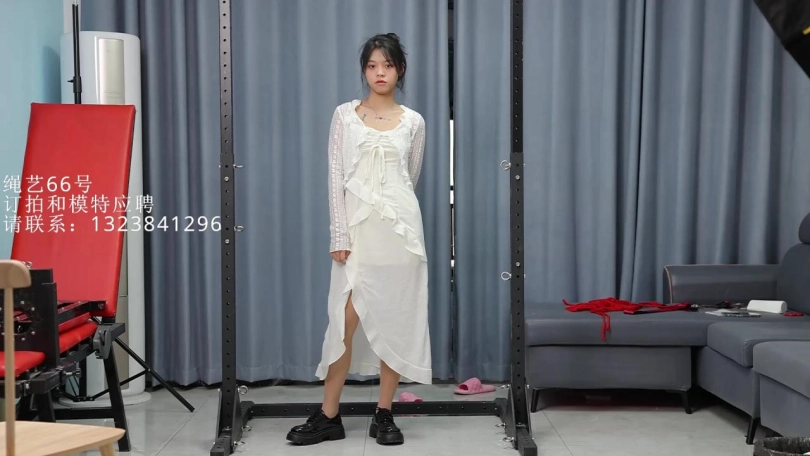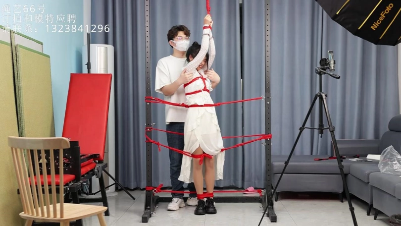 肉丝小仙女,门框内的人柱,吊缚双手,全身固定,没有任何一处关节可以移动。剩下的就是疯狂的TK了哈哈。