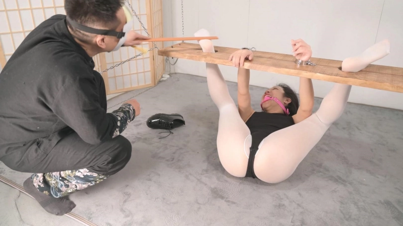 【撒琅制造】沐小雨木枷无内白丝木枷仰缚调教--体操服、口球、TK、SP、刺轮、戒尺、电击、筋膜枪