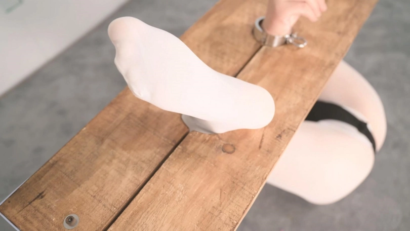 沐小雨擅长的调教系玩法,这次用到了她自己身上。手脚禁锢木枷用铁链吊起固定,她这个姿势被木枷固定,有足够的活动扭动空间,但却牢牢束缚住。跟沐小雨玩是最有意思的,她会有强烈的反应,会反抗、有时还会挑衅,调教过程跟看短剧似得,小高潮不断,把手边能找到的工具也都给用上了,特别是戒尺算是玩尽兴了,这个戒尺买了好长时间才发现,上面还刻着“弟子规”,那就让她背诵,背不过就打。戒尺就怕打到她的骨头,而这个姿势暴露出来能打的地方太多了,大腿、小腿、脚底板、手心还有妹子性感的打屁股,真是过瘾,最后解开体操服用筋膜枪收尾更是全片高潮!另外印象最深的,沐小雨的双手被禁锢,但她有个习惯,会试图用被铐着的手来阻止你,这次在被电击时她用力拍打木枷,这个点还是曾经一段时间的撸点,没想到今天给她激发出来了,幸甚幸甚!