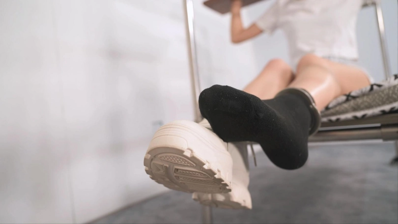 为了更好的欣赏言妍美好的身材比例,特意让她穿上了很短的短裤和运动装,架子和木枷的结合能够把上半身牢牢固定,至于下半身,想看的被欺负时美腿扭动和棉袜脚,那就选择了固定作用极强的板铐,这种铐子中间用铰链连接,把活动范围锁定在一个平面上,而且用手铐来铐住她的脚脚,言妍很怕疼,刚铐上就有意见,知道疼就不要乱动!流畅的美腿再加上加绒的运动鞋包裹着棉袜脚,她时不时微微挣扎,板铐轻轻金属撞击的声音,很有冲动的试听享受,需要放置在那里慢慢体会。当然惩罚调教是必不可少的,刺轮没找到,找来了她最怕的电击器,她一只脚上穿着重重的加绒运动鞋,被板铐牢牢卡住,害怕的挣扎却又不能很大的动作,对于言妍来说着实很受罪,最后还是展示一下她美丽的裸足才算完美!
