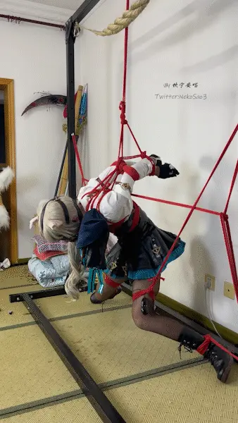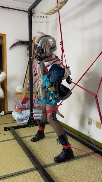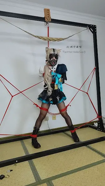 【坎喵】原神cos-琳妮特强制分腿+后手直臂吊缚强制罚站+强高+长时放置+脱缚失败