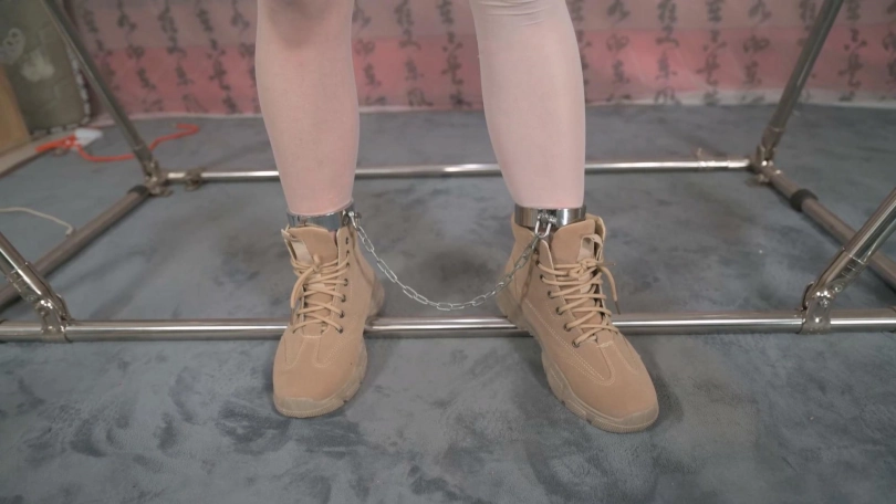 鉴于这个妹子挣扎的欲望特别强烈,怕绳子hold不住她,只有用铁链和镣铐将其固定,贞操带的束缚能力还是不能小觑的,加上镣铐和锁链,可以任由她卖力挣扎,就这样脚上的铁链还是被她硬生生拽断。特别一提的是,这次为了更好的展现贞操带,扯掉了妹子内衣,真空演绎!