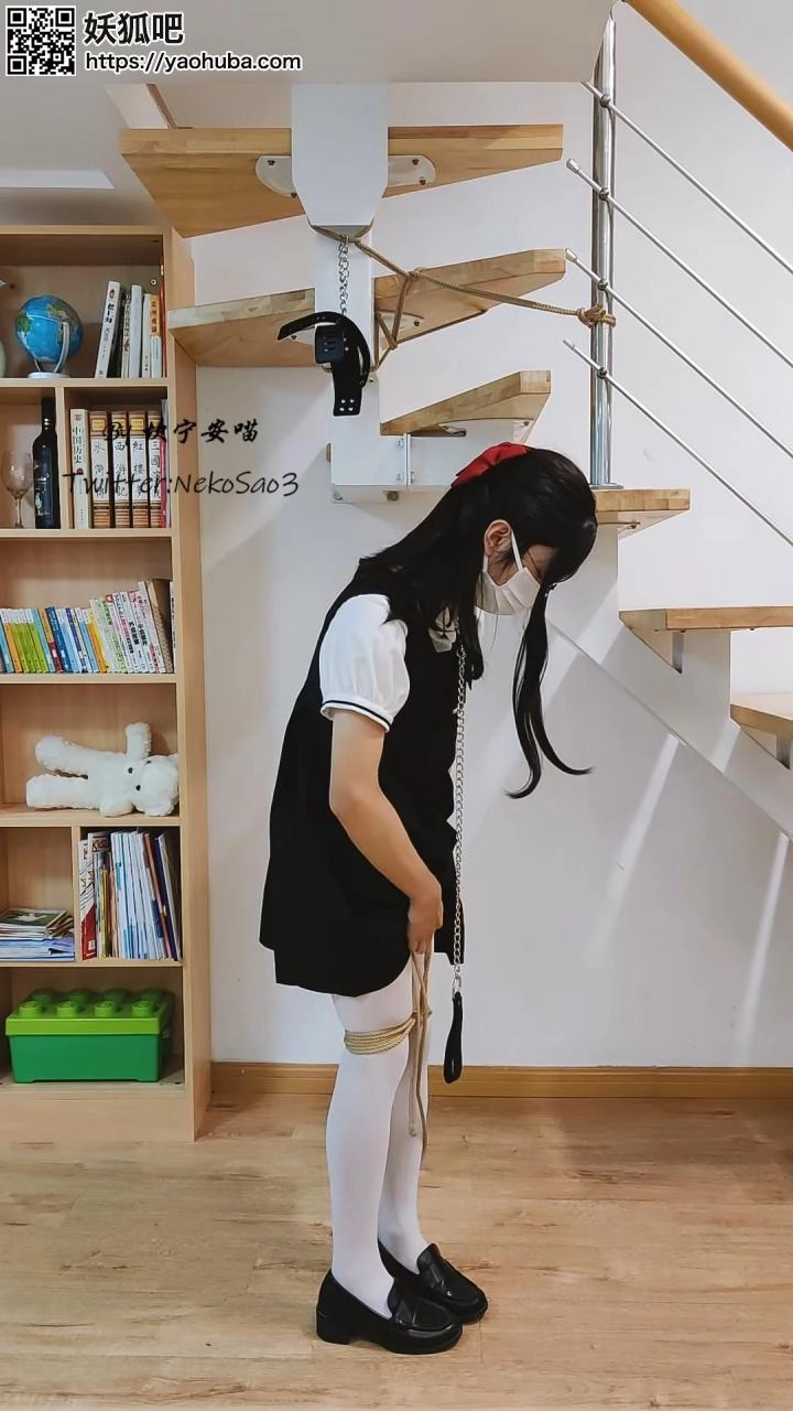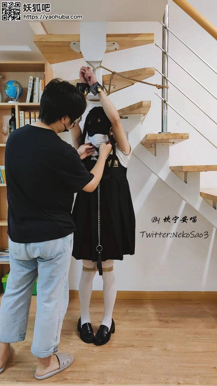 “这一天,心血来潮的坎喵决定把自己的双手吊起来,蒙眼后加上小玩具享受放置的快乐